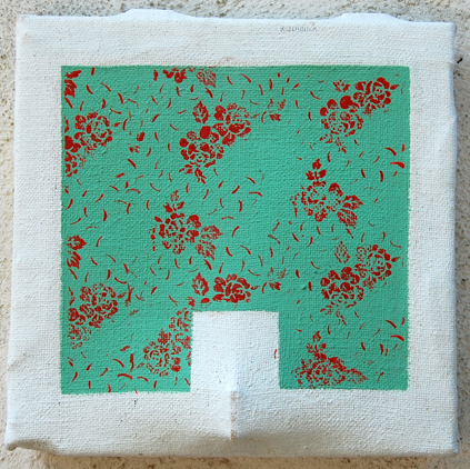 | "Rose", 1991, 46 x 55 x 9,5 cm | "Rose im Rot", 1991, 46 x 55 x 9,5 cm |